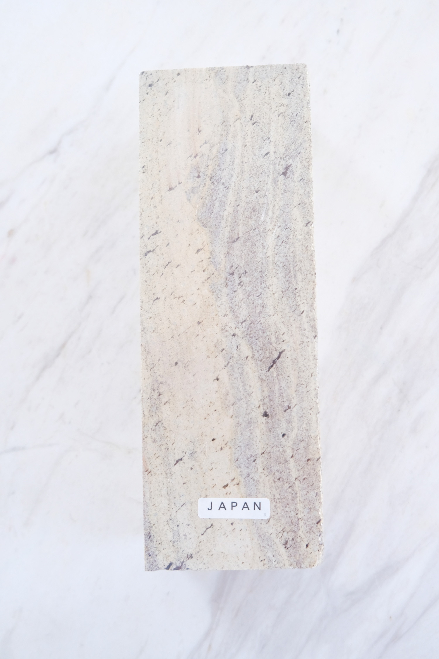 Amakusa Tokubisui Naturschleifstein aus Amakusa/Japan, Körnung etwa 800-1000 Größen ca. 205 x 70x 50 mm, Gewicht ca 1,7 kg. Amakusa Tokubisui Naturschleifsteine sind für den Grundschliff zu verwenden. Während des Schleifvorganges verkleinern sich die Schleifpartikel zu einer Sandige Schleifpaste. Aoto oder Mikawa nagura als Tomonagura verwendebar,dann es entsteht das typisch wolkige Naturstein-Finish und bissige Schärfe! top Qualität ! Mittel Hart.