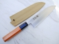 Santoku Allzweckmesser, sehr leicht und handlich, 92 g, 18 cm Klingenlänge (inkl. 1 cm machi) aus Sandvik 19C27-Stahl, Rokkaku-Hanmaru-Griff aus Ichii-Holz (japanische Eibe) mit schwarzer Büffelhornzwinge, HRC 59, Lieferung inkl. Ho-Holz-Messerscheide.